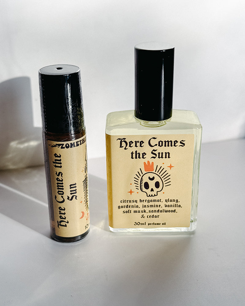 Here Comes the Sun is like a golden playlist for your nose... zesty bergamot opens the show, followed by a floral chorus of ylang-ylang, gardenia, and jasmine. Then vanilla, soft musk, and creamy woods roll in like warm rays on skin.
